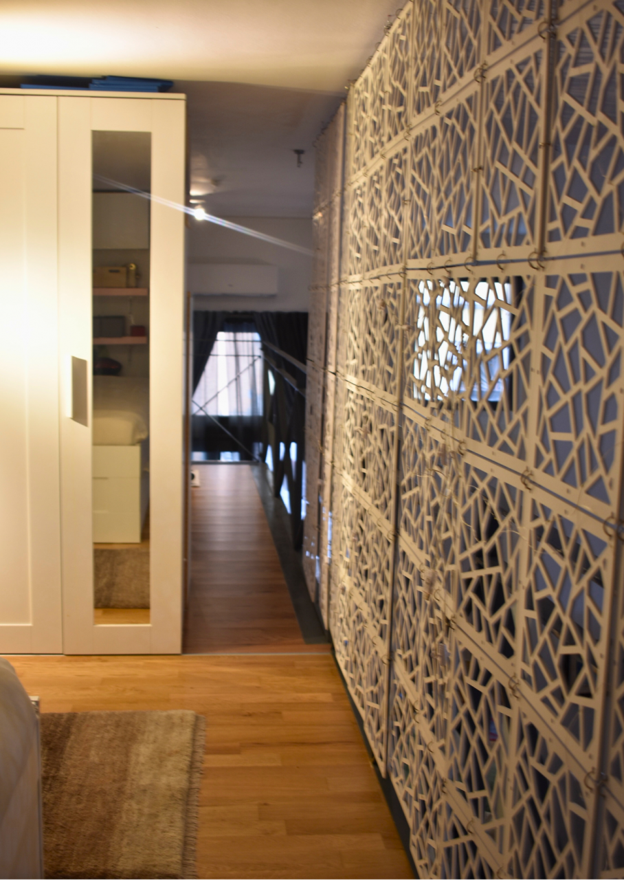 Il soppalco, strutturato per ospitare un ulteriore posto letto e un angolo studio, valorizza l’altezza del loft e amplia le possibilità di utilizzo, rendendolo estremamente versatile.