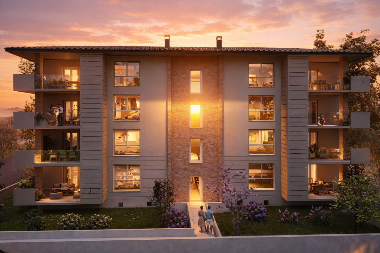 In contesto residenziale di nuova realizzazione a Monticelli Terme, nasce un’elegante soluzione abitativa pensata per chi cerca comfort, qualità costruttiva e uno stile di vita contemporaneo. L’appartamento si inserisce in un edificio moderno dalle linee pulite, circondato dal verde e caratterizzato da ampi spazi esterni vivibili.